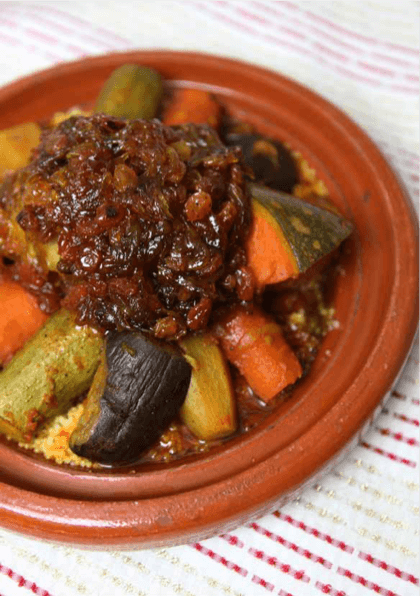 1 from It has always been this way and most people have it an entire lifetime without questioning why. Just before serving, toss the couscous with the cilantro. Preheat oven to 475 degrees. This is a simple way to use up a lot of leftover vegetables while still enjoying a fabulous meal! Stir well so the grains absorb the water evenly. Every friday moroccan households prepare a couscous, typically with chicken or beef and seven different vegetables patiently prepared in a couscoussier and colorfully served in a gassaa, a large clay dish. Cover saucepan and let stand until water is absorbed completely, about 10 minutes. 1 kg durum wheat couscous;